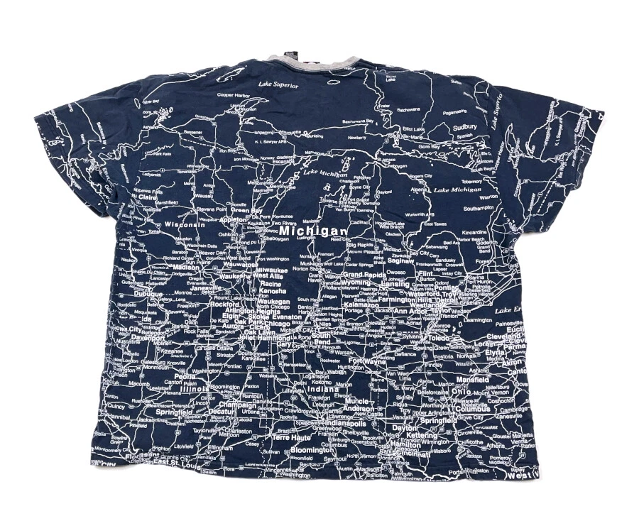 State of Mine Blue Michigan Map All Over Print T Shirt Adult 3XL