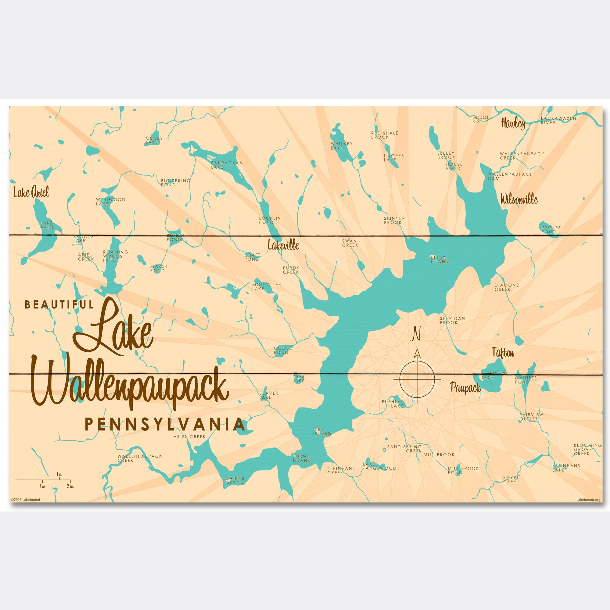 Lake Wallenpaupack Pennsylvania, Wood Sign Map Art – Lakebound®